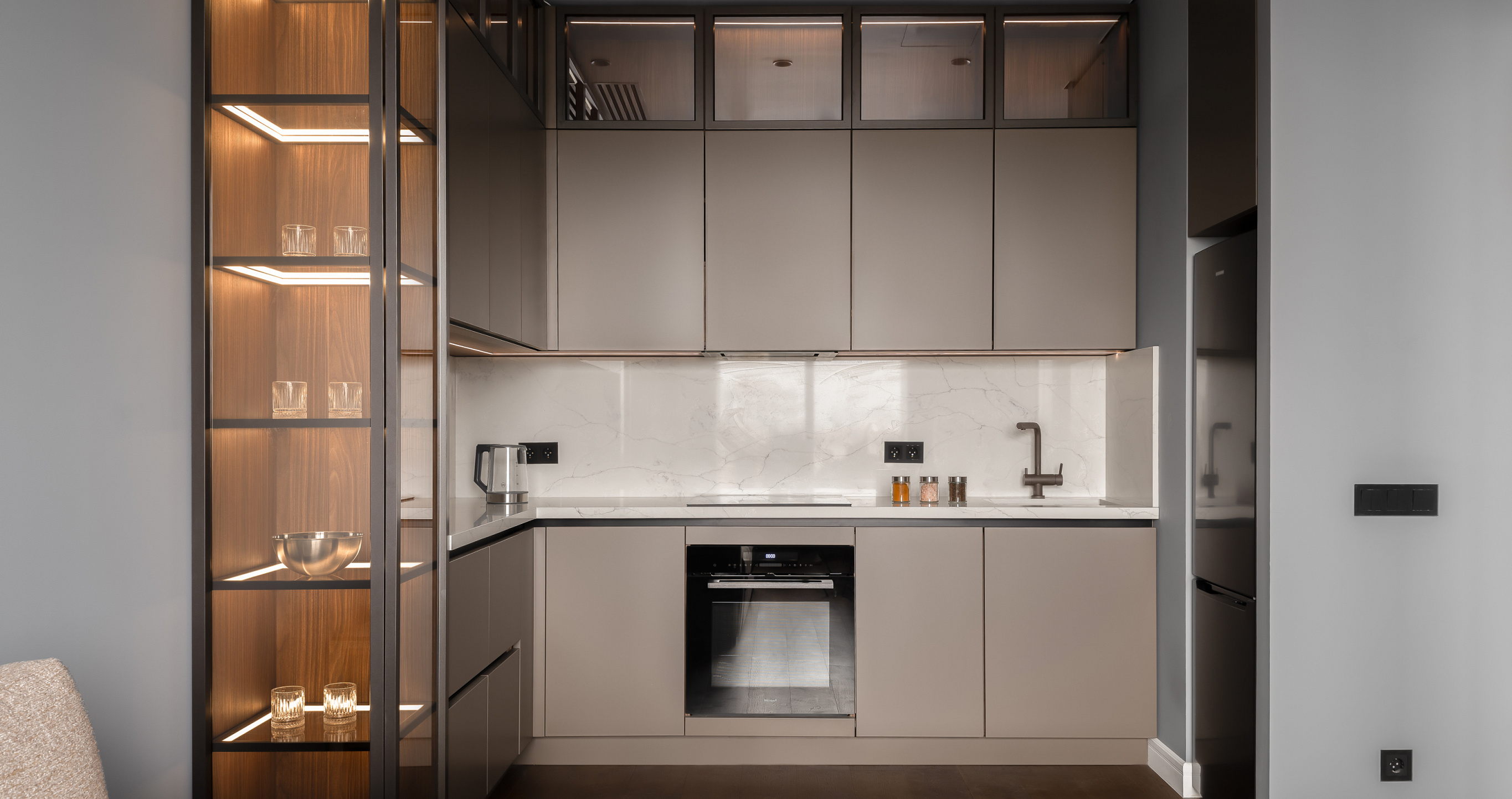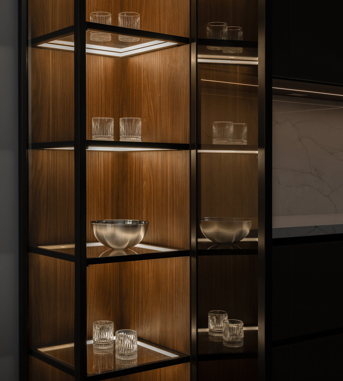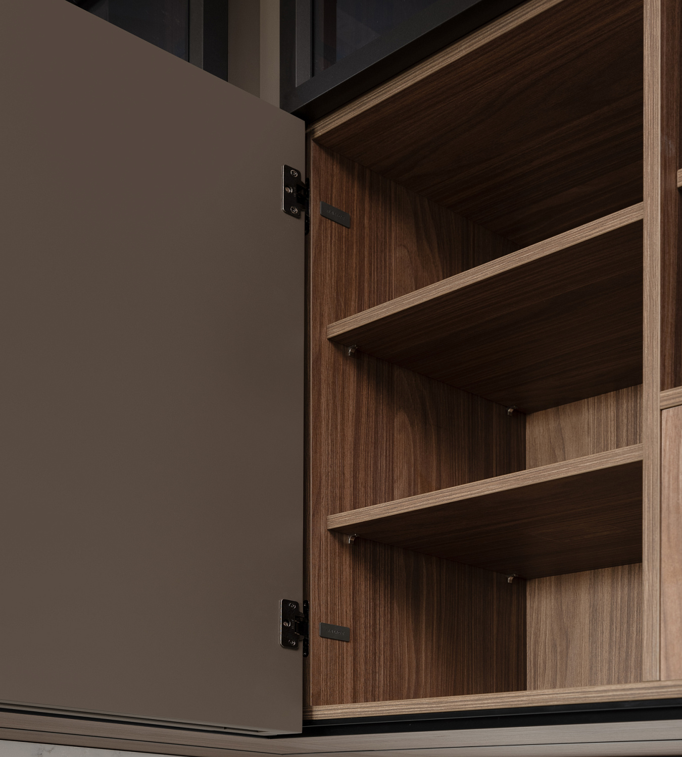 Важной частью реализации стала передовая фурнитура Salice Conecta — решение, которое задаёт высокий уровень в инженерной составляющей мебели.