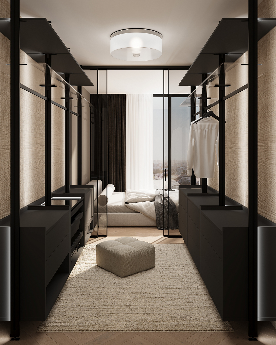 Гардеробная система Nordic — это скандинавская эстетика, переосмысленная в духе времени. Модульная конструкция на основе алюминиевого профиля с креплением к стене и полу обеспечивает прочность и стабильность.