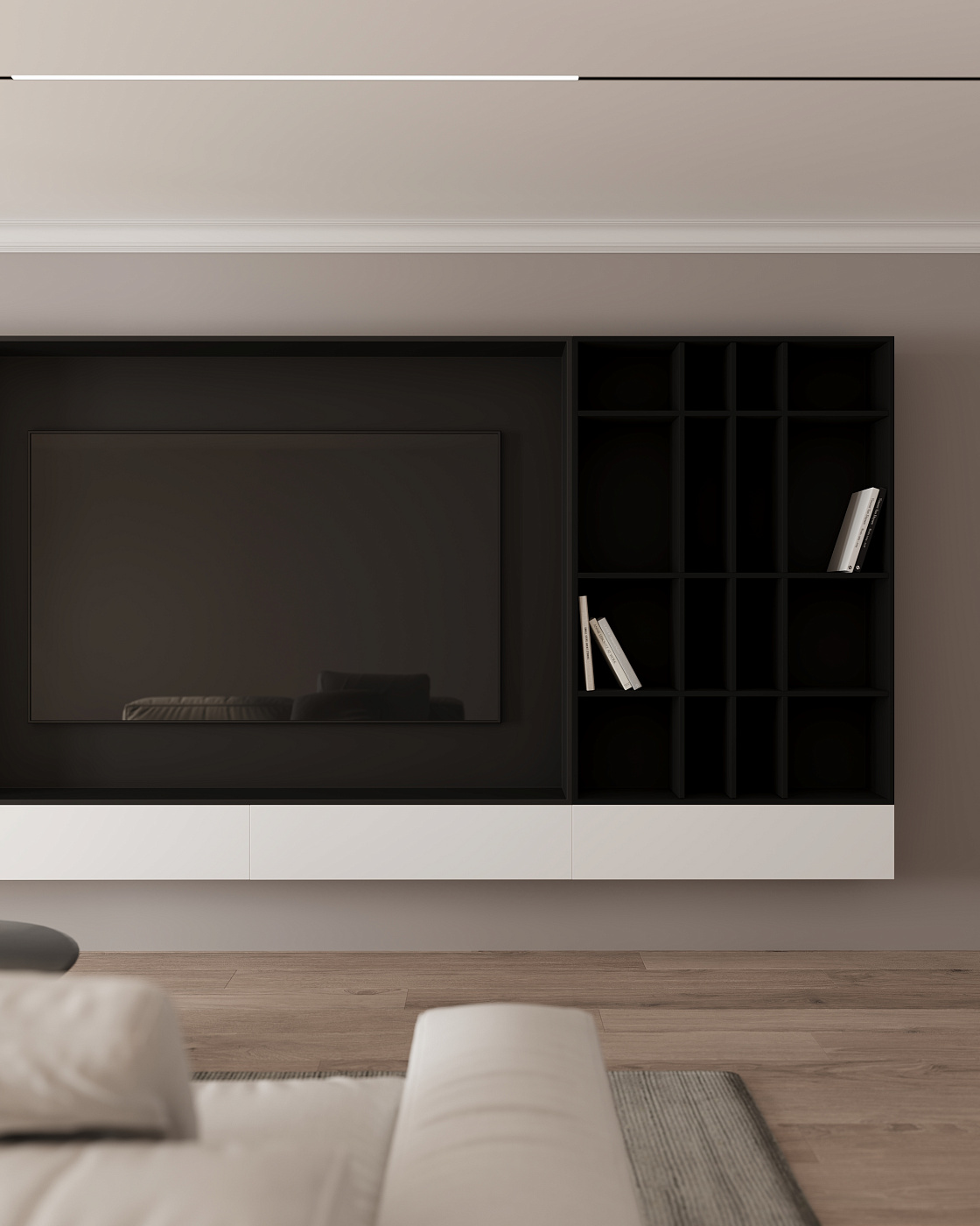 Заказывал кухню и перегородку с полочками, разгораживающую комнату на жилое помещение и кладовку. С кухней всё просто и понятно, а вот с перегородкой были у меня опасения (стены/пол/потолок не самые ровные).