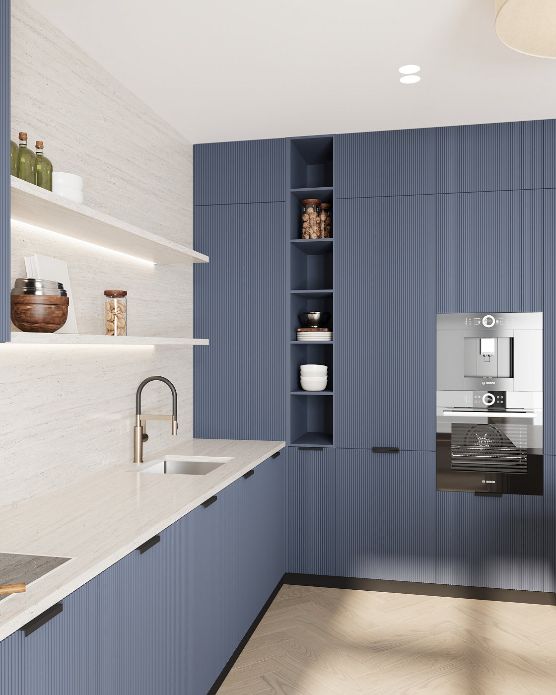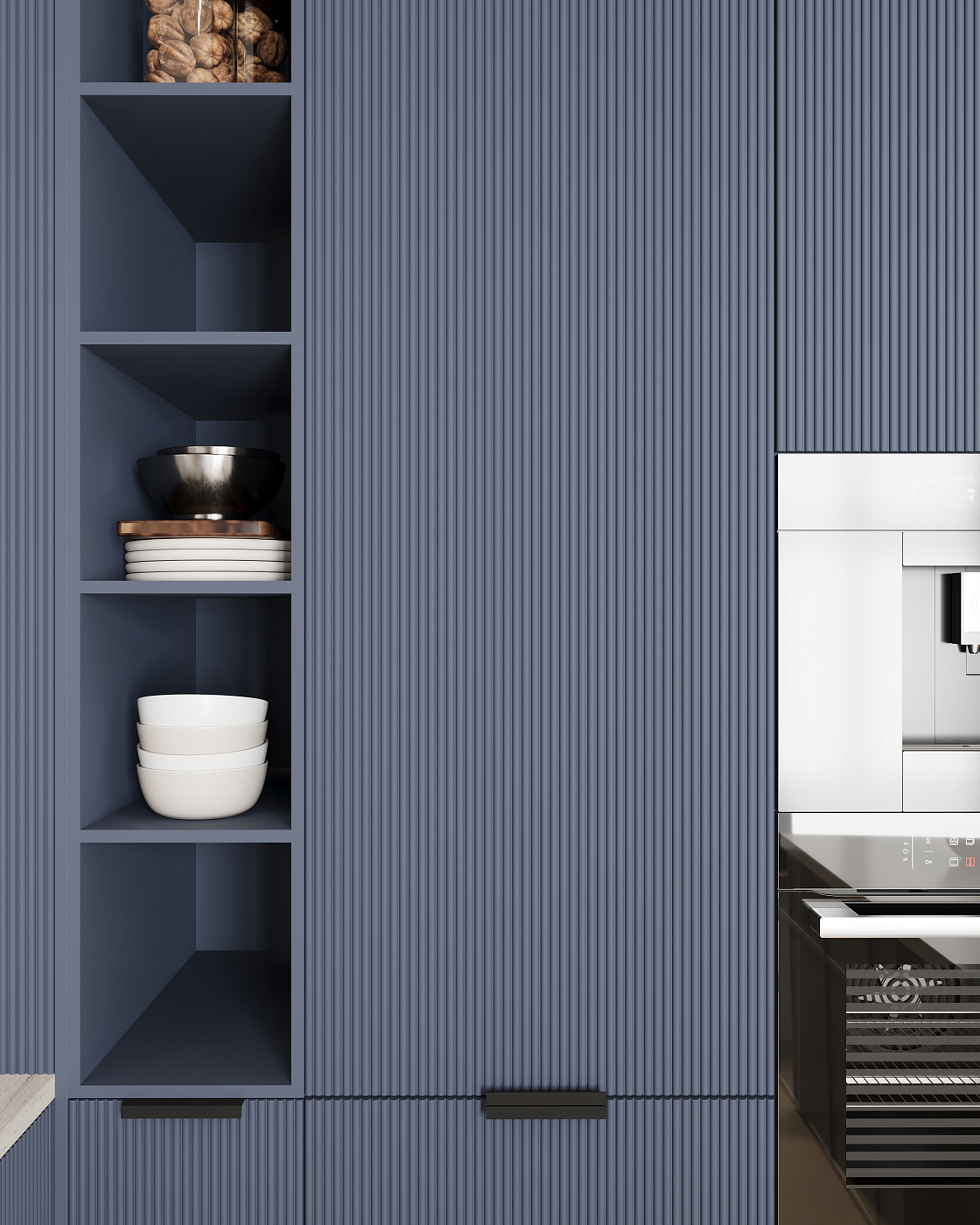 Заказывал кухню и перегородку с полочками, разгораживающую комнату на жилое помещение и кладовку. С кухней всё просто и понятно, а вот с перегородкой были у меня опасения (стены/пол/потолок не самые ровные).