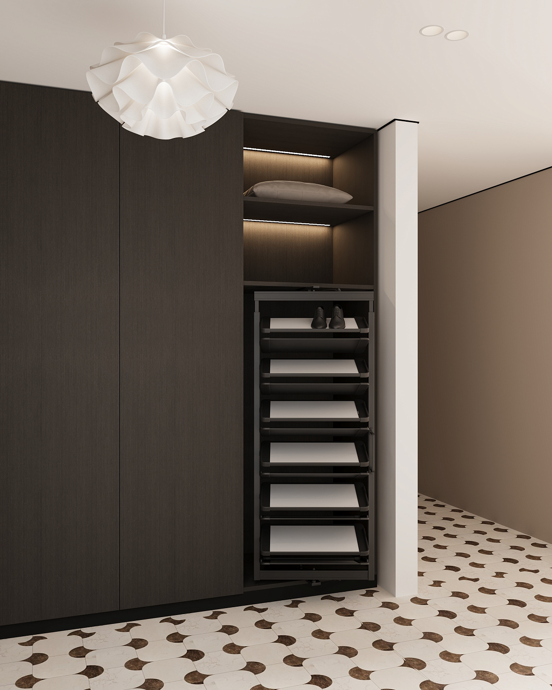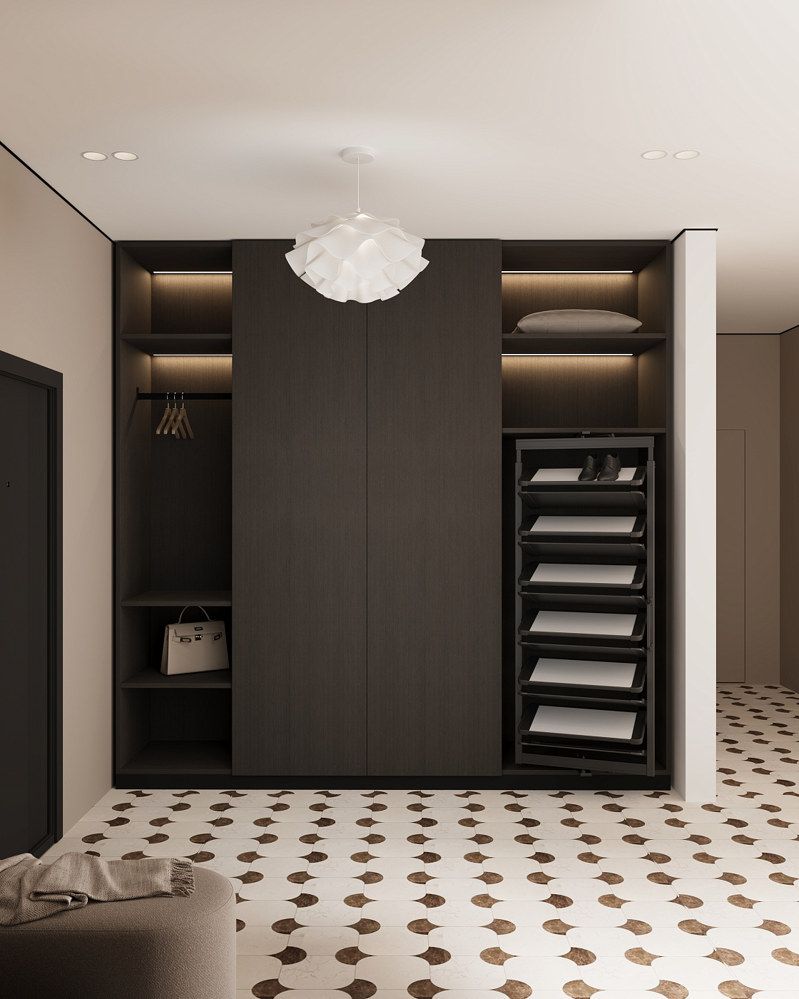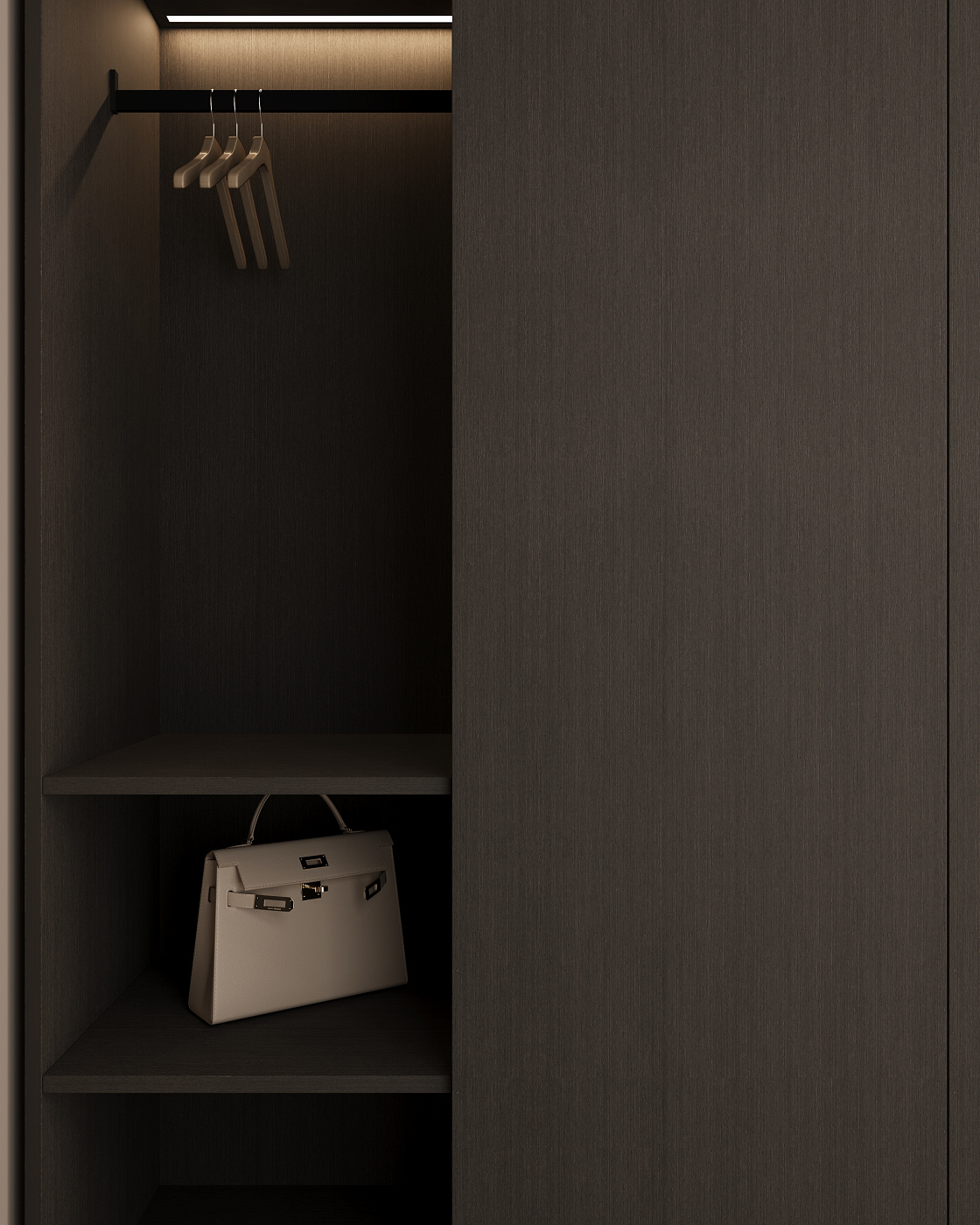 Мультишпон гарантирует идеальную геометрию фасадов и равномерный рисунок, благодаря чему прихожая надолго сохраняет аккуратный и премиальный внешний вид. Глубокий цвет и благородная фактура делают коллекцию Espresso отличным выбором для современных интерьеров с лаконичной и сдержанной эстетикой.